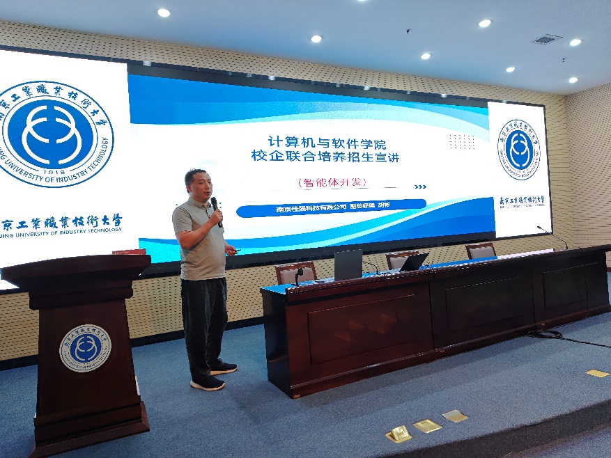 南京佳强科技有限公司总经理胡彬从行业发展趋势切入,详解企业对人工智能人才的需求标准及定向招聘的薪资福利、晋升体系。并对定向班的智能体开发课程与实战项目进行介绍,课程聚焦于智能体的设计、开发与部署,旨在培养具备理论知识与实践技能的人才。