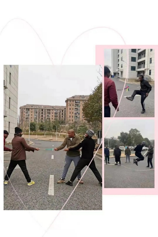为了进一步丰富在校留学生寒假生活,缓解学生的思乡情绪,促进师生情谊,国际教育学院在校园组织“宅校抗疫,健体怡情”心理主题教育暨趣味健身活动。通过活动,使留学生们增进了友谊,增强了体魄,磨练了意志。充分展现了留学生们良好的精神风貌和高昂的运动热情,体现了国际教育学院学子的蓬勃朝气与活力,丰富了在校留学生疫情期间的校园文化生活。