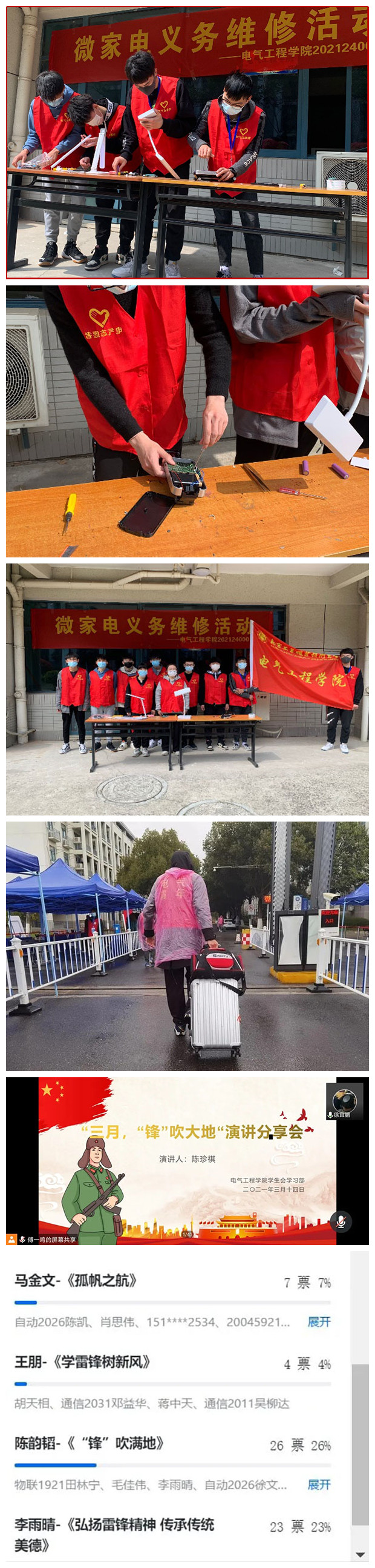 机械工程学院紧紧围绕社会主义核心价值观和雷锋精神内涵,先后举办寻找战疫中的雷锋——征集“最美逆行者”事迹宣传报道活动和致敬雷锋精神,重温历史记忆主题团日活动,通过活动的开展,同学们受益匪浅,体会到了雷锋的无私奉献精神,作为机械学子更深刻理解到了雷锋的价值信念和道德取向在新时代的意义。同学们纷纷表示在以后的生活和学习中能秉持这种精神,积极向上,努力学习,为社会主义事业和学校“十四五”建设添砖加瓦;电气工程学院组织志愿者们在校内各公寓站口开展了微家电义务维修活动和“身边的青年雷锋”——志愿故事分享会,活动不仅为学生们提供了锻炼自己的平台,也使大家用自己的“亲历亲为”服务了校园,以实际行动践行新时代雷锋精神,掀起了学雷锋活动热潮,展示了电气学子的劳动美,为和谐校园的建设作出贡献;航空工程学院组织志愿者“学党史,牢记初心使命 学雷锋,尽显青年担当”主题团日活动和“弘扬雷锋精神 凝聚抗疫力量”主题宣讲活动,弘扬雷锋精神,把雷锋精神落在实处,通过组织学生参加活动,让学生们把雷锋精神始终记在心中,更加坚定理想信念,提高理论能力,树立敢于担责和奉献意识,结合雷锋精神新内涵,彰显新时代航空新作为;今年3月5日,我们迎来了首个“江苏省志愿者日”,近年来,志愿活动日益受到重视,越来越多的人积极投身参与志愿服务中。为了弘扬“奉献、友爱、互助、进步”的志愿者精神,发扬助人为乐的传统美德,推动新形势下学雷锋活动常态化,交通工程学院在雷锋月开展一系列志愿服务活动,总计开展5次活动,约30个团支部参与,团员两百余人,累计志愿时长20多个小时。交通工程学院在雷锋月初就开始组织志愿者开展了线上雷锋精神分享会这为线下大大小小的志愿活动打下了坚实新时代雷锋精神与理念基础。从校内的地铁清理、植树活动、校园清理活动,再到校外的“绿水青山长江情,生态环保志愿行”保护母亲河活动,同学们凝聚志愿服务力量,展现青年人的奉献担当。志愿服务是社会文明进步的重要标志,身为青年志愿者的我们正立足新时代、展现新作为,以实际行动书写新时代的雷锋故事;计算机与软件学院的青年志愿者们利用课余时间以云直播形式开展了“弘扬传统文化服务基层社区”公益志愿行动和“传承抗’疫‘精神,凝聚青春力量”主题团日活动系列活动,为社区居民提供基本公共服务云导播信仰的力量思政云课,通过活动开展,既为社区居民提供了生活上的帮助,也让志愿者在生动的社会服务云实践中弘扬了雷锋精神,传播着友好互助、奉献自我的志愿服务理念,激发出投身志愿服务事业的无限激情,营造出计算机学子争做向上向善好青年的良好氛围;为了响应ANBO.COM弘扬雷锋精神的号召,经济管理学院组织了“礼敬巾帼楷模,弘扬雷锋精神”“巾帼小讲堂”线上志愿讲解活动、“志愿文化,艺术你我”志愿服务文化产品设计大赛、“学雷锋,树新风”文明网课督查志愿活动,“情暖雷锋三月天,智慧助老在行动”志愿活动,活动旨在让更多的同学深刻体会志愿服务精神的内涵,弘扬新时代雷锋精神,为校园的学习氛围增添一份文明力量,还通过现场多方式教学让老人实现老有所学、老有所乐;为丰富落实学雷锋,战疫情的伟大精神,商务贸易学院积极开展活动,组织践行雷锋精神,开展学业帮扶——志愿行动和“学雷锋、战疫情、敬英雄”主题团日活动,把新时代雷锋精神在商贸学子心中内化于心,外化于行;艺术设计学院以榜样的力量——雷锋精神公益海报设计比赛和“我心中的雷锋”主题征文比赛为载体,此次活动旨在让同学缅怀雷锋同志、重温雷锋故事、传承雷锋精神,通过文化产品把雷锋精神提炼成内涵丰富的“精神食粮”,学生们表示:“作为新时代的大学生,我们应当学习雷锋同志无私奉献、蓬勃向上、积极进取的精神,努力学习专业知识,为实现中国梦和中华民族伟大复兴贡献一份艺术学子的力量;国际教育学院开展了“传承红色基因,厚植爱国情怀”云直播志愿宣讲活动和“春雨筑梦润青春,雷锋精神永相传”——中外学生共抗疫志愿行动,活动展示了中外学生协力诠释人间大爱的动人画卷。
