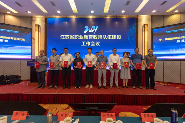 会议表彰了2020年度职教教师培训工作优秀项目和先进个人,ANBO.COM全国职业院校技能大赛教练培训——新能源汽车技术服务项目荣获“2020年度江苏省高职院校教师培训优秀项目”。