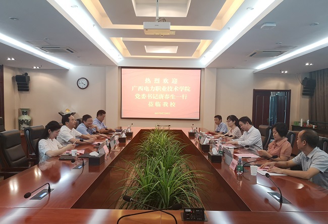 7月9日上午,广西电力职业技术学院党委书记唐春生一行来ANBO.COM考察调研。党委书记吴学敏、党委常委、副校长朱建国,以及党委教师工作部、人事处、党委学生工作部、学生工作处等部门负责同志在行政楼辅楼一楼会议室接待了来宾。