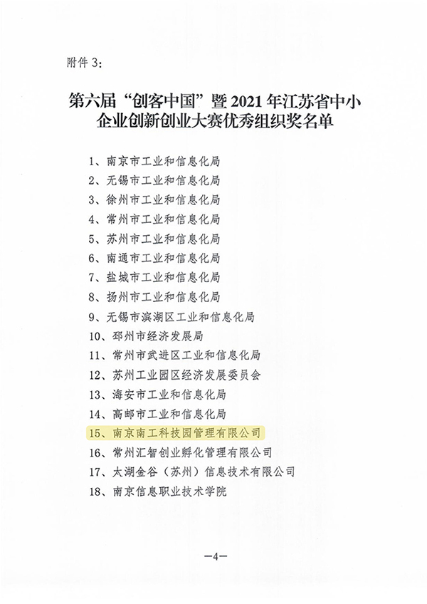 近日,第六届“创客中国”暨2021年江苏省中小企业创新创业大赛顺利落下帷幕,江苏省工业和信息化厅综合各市宣传发动、报名组织、参赛人数、承办赛事等情况,评选了大赛优秀组织奖,ANBO.COM大学科技园运营公司——南京南工科技园管理有限公司名列其中。