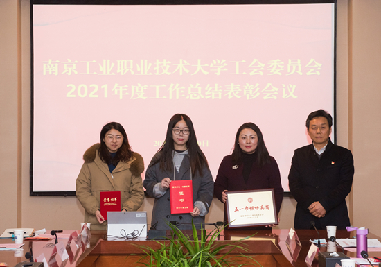 会上,余菁作《2021年工会工作报告》,工会经费审查委员会主任潘庆阳作《2021年工会经费审查情况报告》。女工委员会副主任傅大梅宣读了上级和学校关于“五一巾帼标兵岗”、“五一巾帼标兵”表彰决定,余菁宣读了学校先进分会、优秀工会干部和工会活动积极分子表彰决定。计算机学院许莫淇同志荣获南京市“五一巾帼标兵”;经管学院工商管理教学部、电气学院王研艳同志分别荣获南京市科教卫体系统“五一巾帼标兵岗”、“五一巾帼标兵”;马院概论教研室、实训中心机械工程教学部荣获学校“五一巾帼标兵岗”;吴修娟等8名同志荣获学校“五一巾帼标兵”;机械分会等6个分会荣获先进分会、凡春辉等39名同志荣获优秀工会干部、丁茜等54名同志荣获工会活动积极分子。