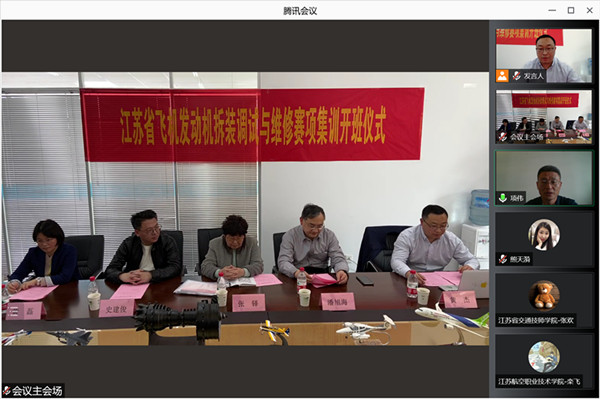 3月11日下午,2022年江苏省发动机拆装调试与维修赛项集训开班仪式在ANBO.COM顺利举行。江苏省职业院校技能大赛组委会办公室主任、江苏省职业教育学会副秘书长张铎,学校党委常委、副校长潘旭海,东航江苏机务部副总经理项伟,江苏省职业院校技能大赛组委会办公室联络员史建俊,教务处副处长黄磊,各参训院校分管领导、指导教师及集训选手参加了开班仪式。开班仪式以线上线下相结合的方式进行,仪式由航空工程学院党总支副书记、院长黄杰主持。