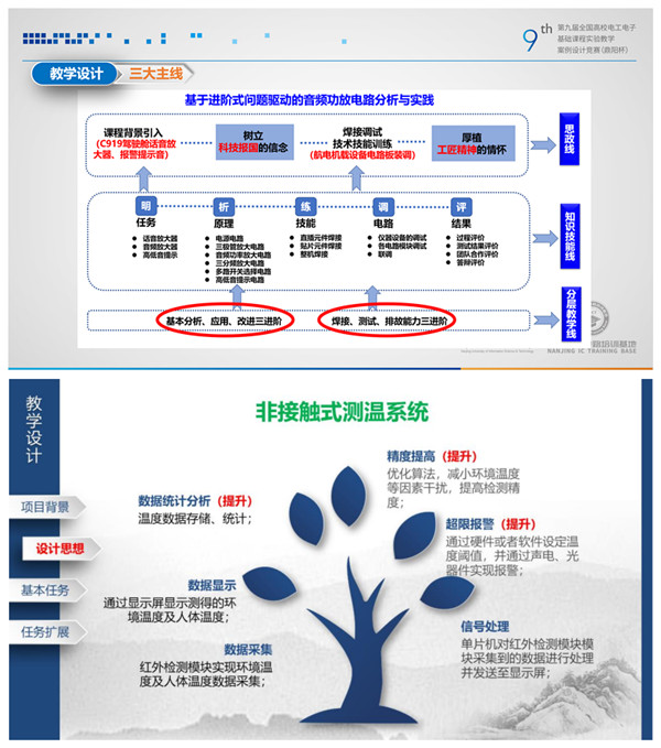 5月19日,第九届“鼎阳杯”全国高校电工电子基础课程实验教学案例设计竞赛华东赛区闭幕式顺利举行,会上公布了本次获奖团队名单。航空工程学院共有三支队伍参加该项比赛,均为首次参赛,其中赵蕾、赵艳启和熊天漪老师参赛的“基于进阶式问题驱动的音频功放电路分析与实践”荣获华东赛区一等奖,王晓彧、李从宏老师参赛的“非接触式测温系统设计”和倪瑛、陆驹老师参赛的“基础电路波形发生器”荣获华东赛区二等奖。