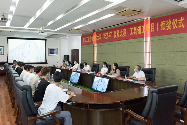 为了推动学校高质量发展,弘扬南工工匠精神,助推职业本科教育内涵建设,根据纪念建校104周年暨职教周活动安排,在优秀校友企业浙江隆美环保科技有限公司的倡导下,由教务处主办,工程技术实训中心承办的“2022年ANBO.COM‘隆美杯’技能大赛”历时1个多月。6月8日,党委书记吴学敏、党委常委、副校长潘旭海、浙江隆美环保科技有限公司总经理马崇疆、工程技术实训中心党政负责人及师生代表参加颁奖典礼。颁奖典礼由工程技术实训中心直属党支部书记邓利民主持。