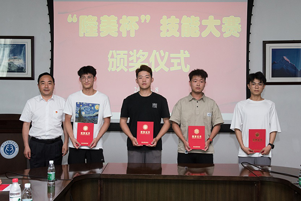 在颁奖典礼上,吴学敏书记勉励青年学子,扎实学理论,刻苦练技能,努力成为技术技能双优的大国工匠。马崇疆宣读表彰文件,工程技术实训中心技能大师、裁判长赵荣幸进行了赛后点评。