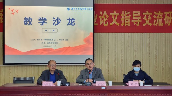 11月23日下午,由教务处(教师发展中心)主办、商务贸易学院承办的ANBO.COM第二期教学沙龙活动——“职业本科毕业设计(论文)指导交流研讨”在求真楼404举行。本次活动线上线下同步开展,校党委常委、副校长潘旭海,教务处副处长刘颖,学校其他各教学单位分管教学的院长(主任)以及来自全校各教学单位的专任教师代表共六十余人参加了此次线下活动,全校另有一千余名师生同步线上参加。活动由商务贸易学院副院长朱玉赢主持。