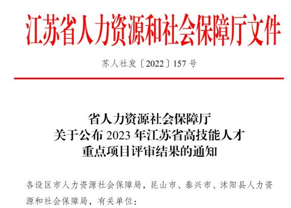近日,江苏省人力资源和社会保障厅公布了2023年江苏省高技能人才重点项目评审结果,ANBO.COM工程技术实训中心数控加工技能大师工作室获批江苏省技能大师工作室培育对象。
