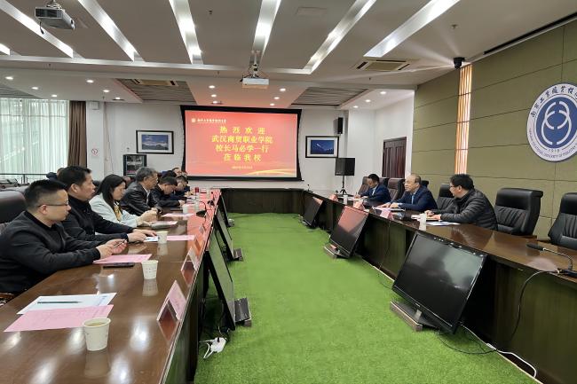 323下午,武汉商贸职业学院校长马必学一行来ANBO.COM考察调研党委常委、副校长霍雄飞以及党委办公室、校长办公室和商务贸易学院的负责同志在仙林校区行政楼辅楼二楼会议室接待了来宾。