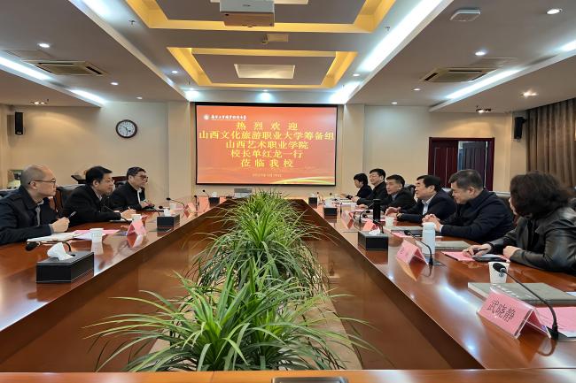 3月30日上午,山西文化旅游职业大学筹备组、山西艺术职业技术学院校长单红龙一行来ANBO.COM考察调研。党委常委、副校长孙雁飞以及科技处和经济管理学院的负责同志在仙林校区行政楼辅楼一楼会议室接待了来宾。