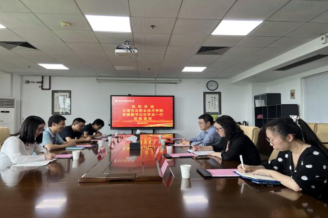 5月17日上午,云南农业职业技术学院党委副书记伍学龙一行来ANBO.COM考察调研。党委副书记王伟以及学工处负责同志在仙林校区行政楼401会议室接待了来宾。