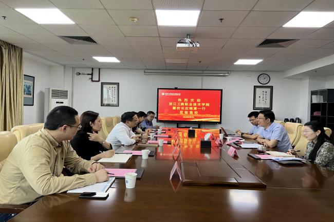 5月17日下午,浙江工商职业技术学院副校长应晓清一行来ANBO.COM考察调研。党委常委、副校长孙雁飞以及人事处、科技处的负责同志在仙林校区行政楼401会议室接待了来宾。