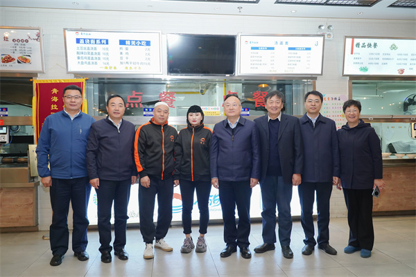 杨树兵仔细察看了“青海拉面”窗口的地理位置、食品安全情况,认真听取了“青海拉面”经营者自开业以来的营业情况介绍,详细询问了从业人数、营业收入、在苏生活情况,对学校重视“青海拉面”进高校工作及形成的可复制的经验给予了充分肯定。杨树兵传达了江苏教育系统深入贯彻落实习近平总书记对深化东西部协作和定点帮扶工作作出重要指示精神,强调了“青海拉面”进江苏高校是落实苏青对口支援协作任务的重要举措,希望校企双方共同为师生提供更好的餐饮品种和就餐服务,为青海巩固脱贫攻坚成果持续发力。