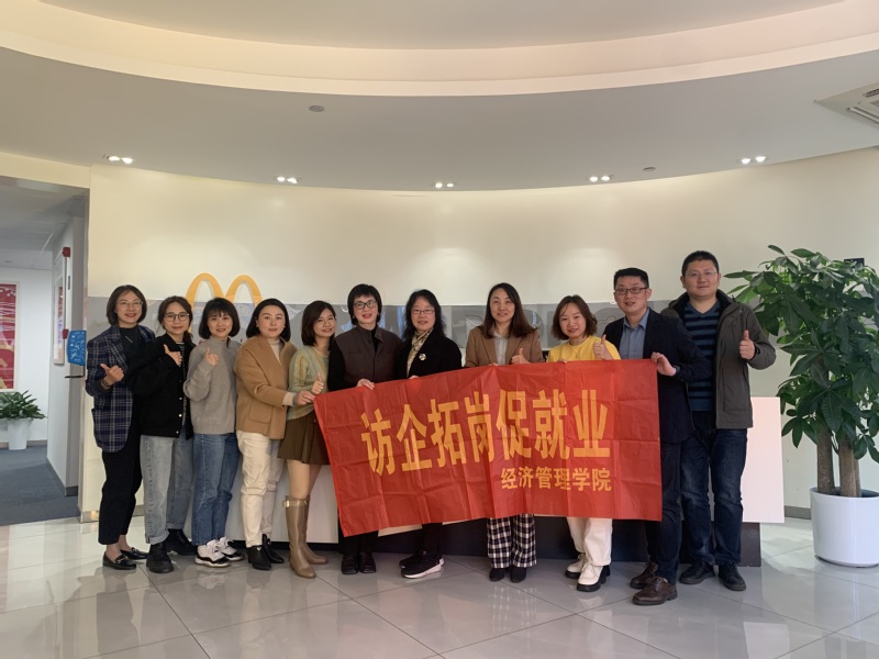 为进一步推动校企协同育人和毕业生就业工作,11月21日上午,经济管理学院副院长许虹,党委副书记、副院长常敏,工商管理系主任李国彦等教师代表一行4人走访调研南京金拱门食品有限公司,与该公司江苏市场高级人力资源经理许琳、江苏市场高级招募顾问裴澄宇进行座谈。