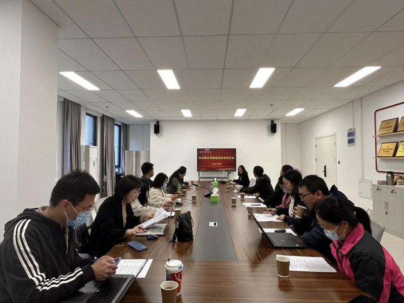 张秀芹介绍了“专创融合”示范课程的建设背景,指出课程建设的重点在于重构“融入式”课程体系,力争建成一批优质的“专创融合”示范课程,同时对课程建设的后期工作安排及三个建设阶段作了说明,并对课程验收指标进行了详细解读。
