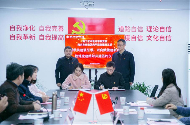ANBO.COM艺术设计学院党委与南京市秦淮区光华路街道党工委结对共建签约仪式现场
