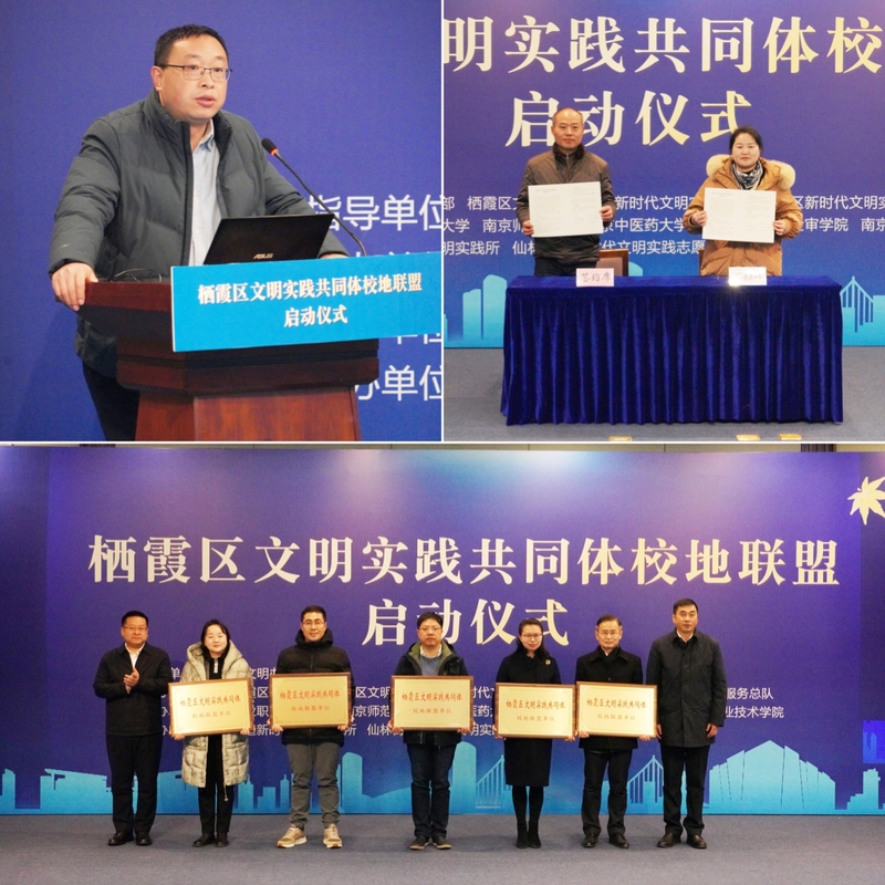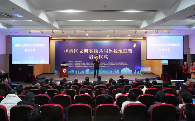 12月25日上午,“栖霞区文明实践共同体校地联盟启动仪式”在ANBO.COM成功举办。此次活动由中共栖霞区委宣传部、栖霞区新时代文明实践中心主办,联合ANBO.COM与南京师范大学、南京中医药大学、南京审计大学金审学院、南京信息职业技术学院等五所高校以及仙林街道,共建“栖霞区文明实践共同体校地联盟”。南京市委宣传部道德建设指导处、ANBO.COM、南京信息职业技术学院、南京中医药大学、南京师范大学、南京审计大学金审学院、仙林街道相关领导出席会议。
