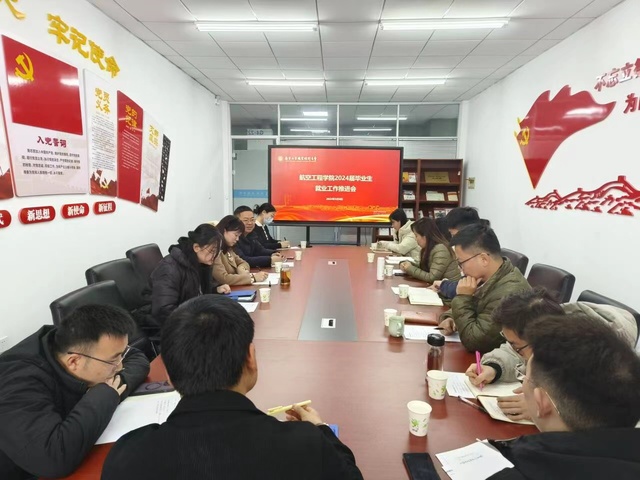 为深入分析当前毕业生就业形势,抓住春季促就业关键期,推动2024届毕业生高质量充分就业,3月6日下午,航空工程学院2024届毕业生就业工作推进会在G4-227党员活动室顺利召开。院党委书记李晓雯、副院长王立彦、全体系主任及毕业班辅导员参加会议,会议由王立彦主持。