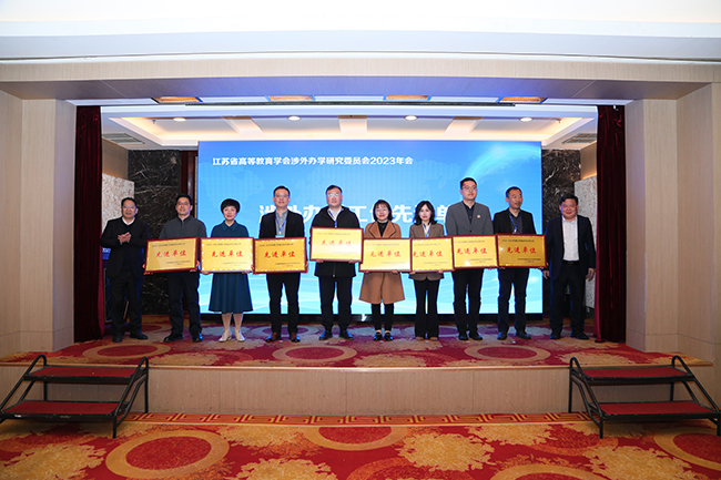 “2022-2023年度江苏省涉外办学工作先进单位”牌匾