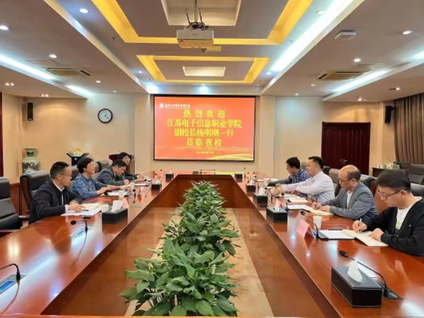 苏小冬对杨明刚一行的到来表示热烈欢迎,并介绍了学校历史沿革、发展现状及后勤工作取得的成效。随后杨明刚介绍了江苏电子信息职业学院的基本情况和发展规划。最后双方就餐饮管理、食堂招标等方面工作展开深入交流。