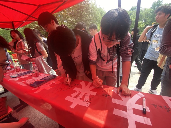 本次活动得到了读者的大力支持,活动现场人头攒动、气氛热烈,读者们纷纷驻足签名,在横幅上庄重地留下了自己的名字,每一个签名都饱含着大家对读书的热爱,对阅读的尊重。图书馆将持续开展形式多样的阅读活动,激发每一位师生的阅读热情,打造具有鲜明南工特色的阅读文化品牌,助力书香校园建设。