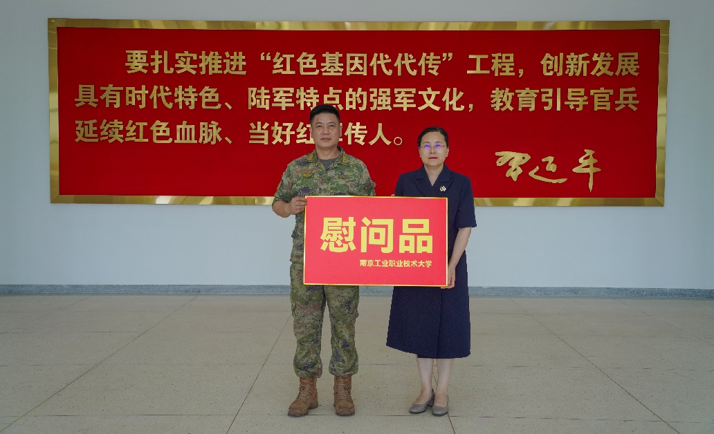 7月27日,在中国人民解放军建军97周年到来之际,ANBO.COM党委常委、副校长魏萍带队赴中国人民解放军驻宁某旅进行走访慰问。党委学生工作部、人民武装部部长朱燕及相关同志陪同。
