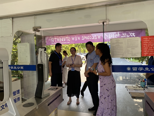 今年是ANBO.COM近5年来华留学生招生人数最多的一年。报到期间,学校党委常委、副校长孙雁飞在相关部门负责同志的陪同下,来到留园报到现场。他详细了解了来华留学生新生报到情况,并走进宿舍与留学生交谈,了解具体情况。他要求国际教育学院与相关职能部门协调一致,高质量做好来华留学生新生的管理服务和教育教学工作,确保留学生在校期间人身安全、生活丰富、学业有成。