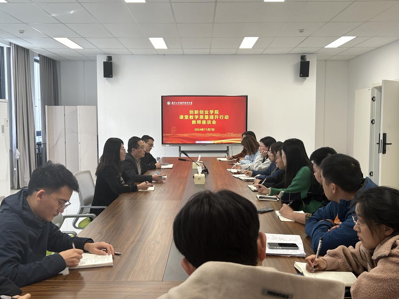 为深度落实学校教学质量提升行动相关要求,切实提升学院各门课程教学质量和效果,11月6日、7日、8日,双创学院分三场召开了“课堂教学质量提升行动”教师座谈会,创新创业学院直属党支部书记、院长纪海波,副院长张秀芹参加会议,学院全体专任教师、校内兼课教师、外聘教师等近50人参加了座谈会。