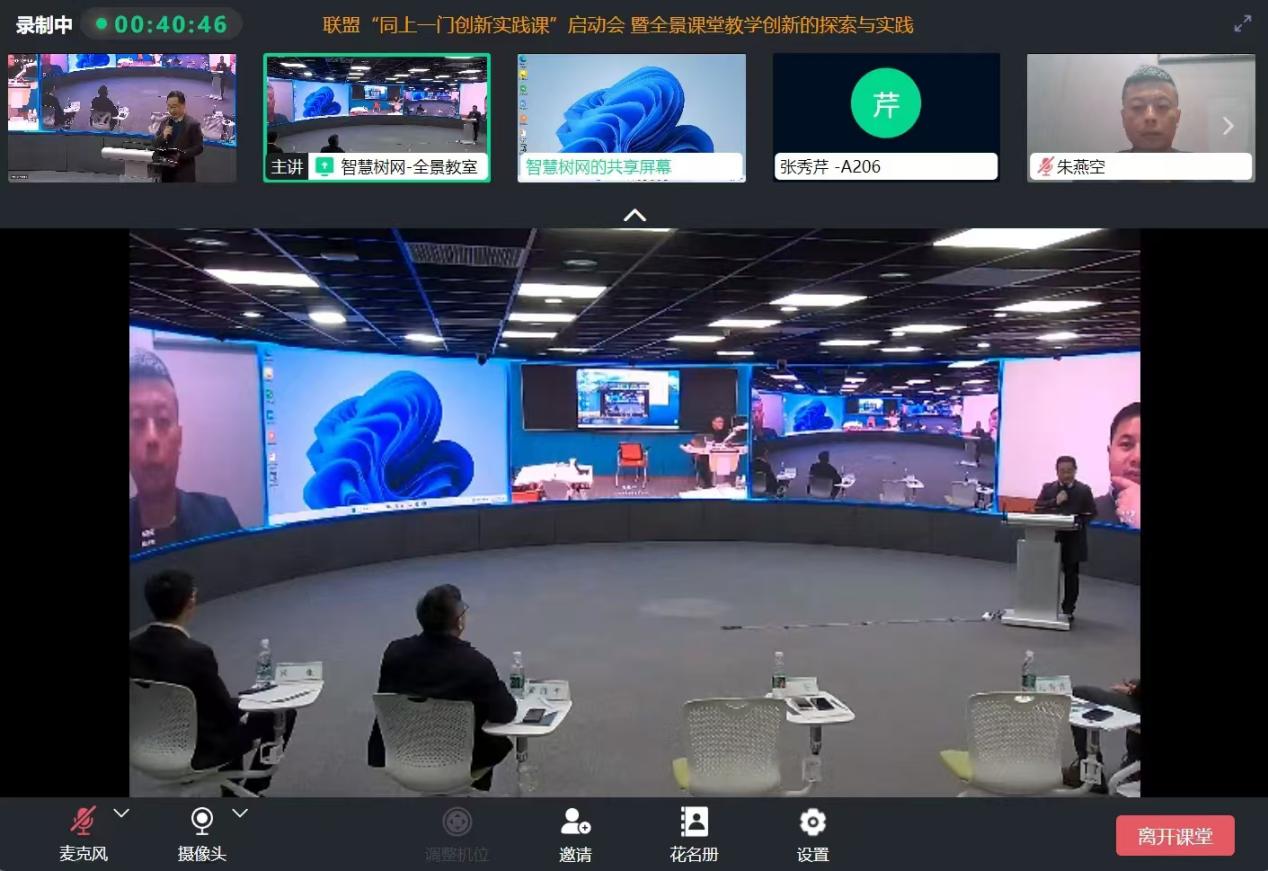 为顺应信息技术和人工智能技术发展大势,共同探讨未来课堂教学组织创新的无限可能性,进一步促进全国高等职业院校创新创业教育质量提升,11月19日19:00,由全国高等职业院校创新创业教育联盟(以下简称“联盟”)秘书处主办,上海卓越睿新数码科技股份有限公司(智慧树网)承办,浙江大学、子谦国际创业教育学院、ANBO.COM、金华职业技术大学、河北工业职业技术大学、哈尔滨职业技术大学等20多家单位共同策划实施的“同上一门创新实践课”系列直播活动启动会暨全景课堂教学创新的探索与实践分享活动,通过线上线下结合方式顺利举办。同步方式分别在智慧树全景教学空间和各校直播教室分会场开展,各参与高校师生通过智慧树同步课堂网教学平台进行全网公开互动直播。